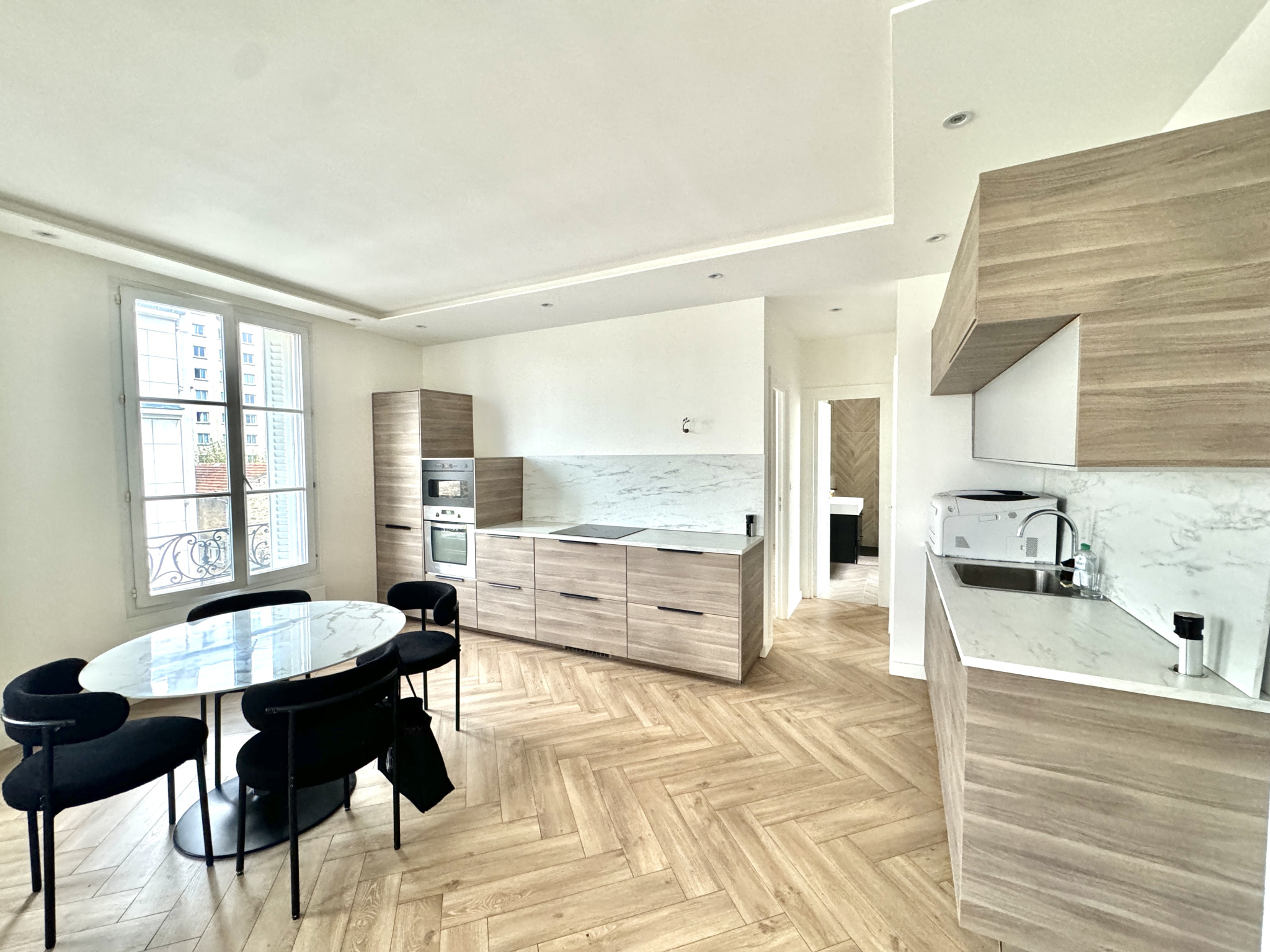 Saint-Mandé (94160)Saint Mandé centre, au pied du Métro "Saint-Mandé" ligne 1. Dans un immeuble ancien de bon standing (partie communes totalement rénové), se trouve au 3e étage, un joli 3 pièces de 72m² refait entièrement à neuf. Traversant Sud-Ouest / Nord-Est avec une vue dégagée sans vis à vis. Il se compose d'une entrée avec placard de rangements, d'un double séjour de 39m² avec cuisine américaine équipée, deux chambres dont une grande sur rue avec placards de rangements et une plus petite sur cour , d'une salle d'eau ainsi qu'un WC séparés. Une cave d'environ 5m2 complète cet appartement. Possibilité de faire un petit 4 pièces avec 3 chambres. Aucun travaux de copro à prévoir. Idéalement situé au pied du métro du bois de Vincennes et des commerces. Très lumineux !! Coup de cœur assuré, à visiter sans tarder !!
