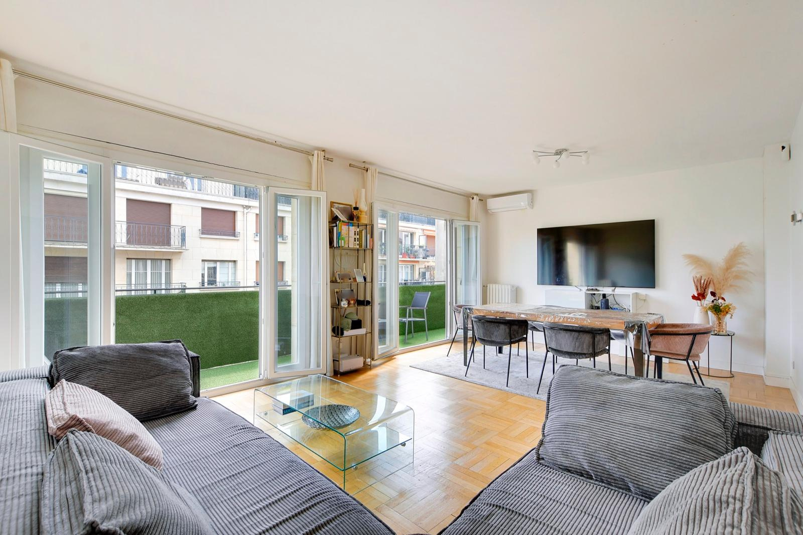 Saint-Mandé (94160)EXCLUSIVITÉ !! Saint Mandé, emplacement N° 1, proche bois. Dans un petit immeuble de standing Pierre de Taille des années 70, digicode, interphone, se trouve au 4e étage sur 5 avec ASCENSEUR, un très beau 4 pièces de 90m2 Carrez refait à neuf. Traversant sur rue calme et sur jardin avec une vue dégagée. Il se compose d’une entrée, d'un séjour de 27m2 avec grandes baies vitrées donnant sur un balcon de 10m2, d'une cuisine séparée de standing complètement équipée, de 3 chambres dont une suite parentale de 15 m2 complétement aménagée avec accès au balcon + une salle d'eau + WC, deux autres chambres d'environ 10/11m2 sur jardin, de nombreux rangements ainsi qu'une salle de bain et d'un deuxième WC séparé. Belle prestation, très calme et lumineux, climatisation. Une grande cave d'environ 10m2 complète cet appartement !! Possibilité box en sus en sous-sol !!! Idéal Familial, à visiter sans tarder !!