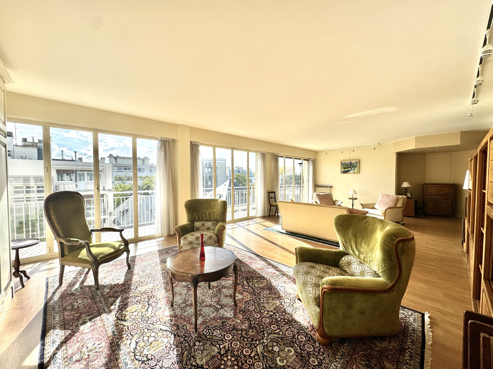 Saint-Mandé (94160)Saint Mandé, secteur recherché, Proche Bois. Dans un immeuble de 1970 de bon standing avec interphone, digicode, ASCENSEUR et gardien, se trouve un beau 5 pièces de 132m² Carrez. Traversant sur rue calme et sur jardin. Il se compose d'une entrée avec rangements, d'un double séjour de 50m² donnant sur un Balcon/Terrasse de 10m² exposé Plein Sud, d'une cuisine séparée et équipée de 14m2. La partie nuit propose 3 chambres, dont une sur rue de 14m² avec dressing, salle de bain et WC et deux autres d'environ 13m² sur jardin avec penderies dont une avec accès au balcon, d'une deuxième salle d'eau ainsi qu'un WC séparé. Une cave d'environ 5m² complète cet appartement. Local vélo dans l'immeuble. Une place de parking disponible en sous-sol en supplément. Possibilité de faire une 4e chambre si besoin !! Appartement sans perte d'espace, bien agencé, idéal familial !! À visiter rapidement !!