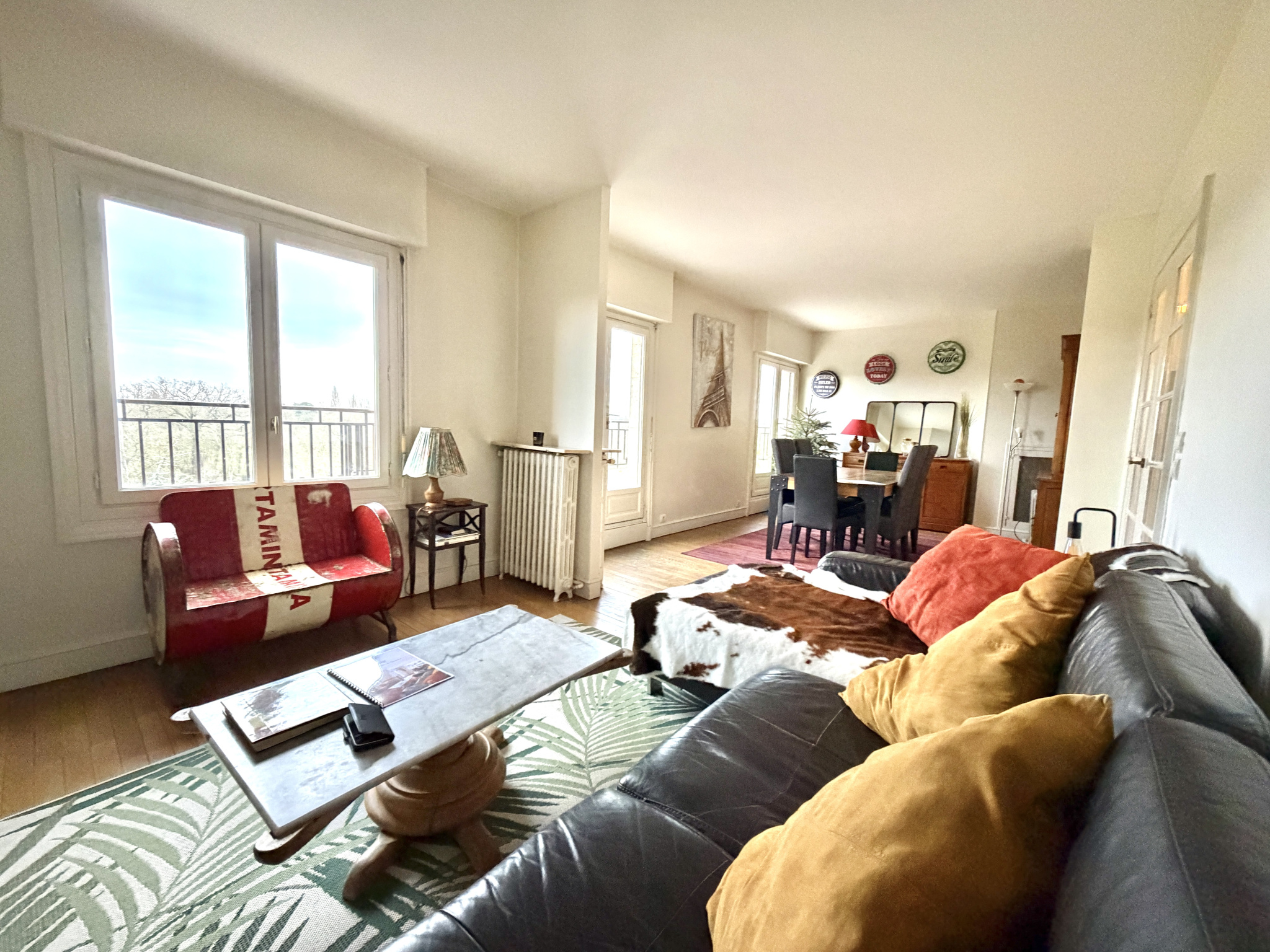 Saint-Mandé (94160)Saint Mandé // Situation exceptionnelle face au bois sur la Chaussée de l'Étang, dans un immeuble de 1950 de bon standing avec ascenseur. Se trouve au DERNIER ETAGE AVEC TOIT TERRASSE un beau 5 pièces de 86m² carrez en bon état général. Traversant Est-Ouest, baigné de lumière avec une vue dégagée sans vis à vis au calme !! Il se compose d'une entrée avec placards, d'un double séjour de 30m2 avec cheminée fonctionelle donnant sur un balcon de 9m2 avec vue sur le bois, d'une cuisine séparée équipée donnant sur une Terrasse de 11m2 donnant accès au Toit terrasse de 90m2, de 3 chambres dont une avec une salle de bains attenante, d'une salle d'eau et d'un WC séparé à lentrée. Nombreuses possibilitées d'aménagement possible (peu de mur porteur). Une grande cave d'environ 7m2 et une place de parking complètent ce bien. Autorisation de la copro pour construire sur le toit terrasse sous réserve d'une validation d'un permis de construire !! Appartement d'exception à la situation privilégiée !! Enorme potentiel !!! À voir très vite !!!