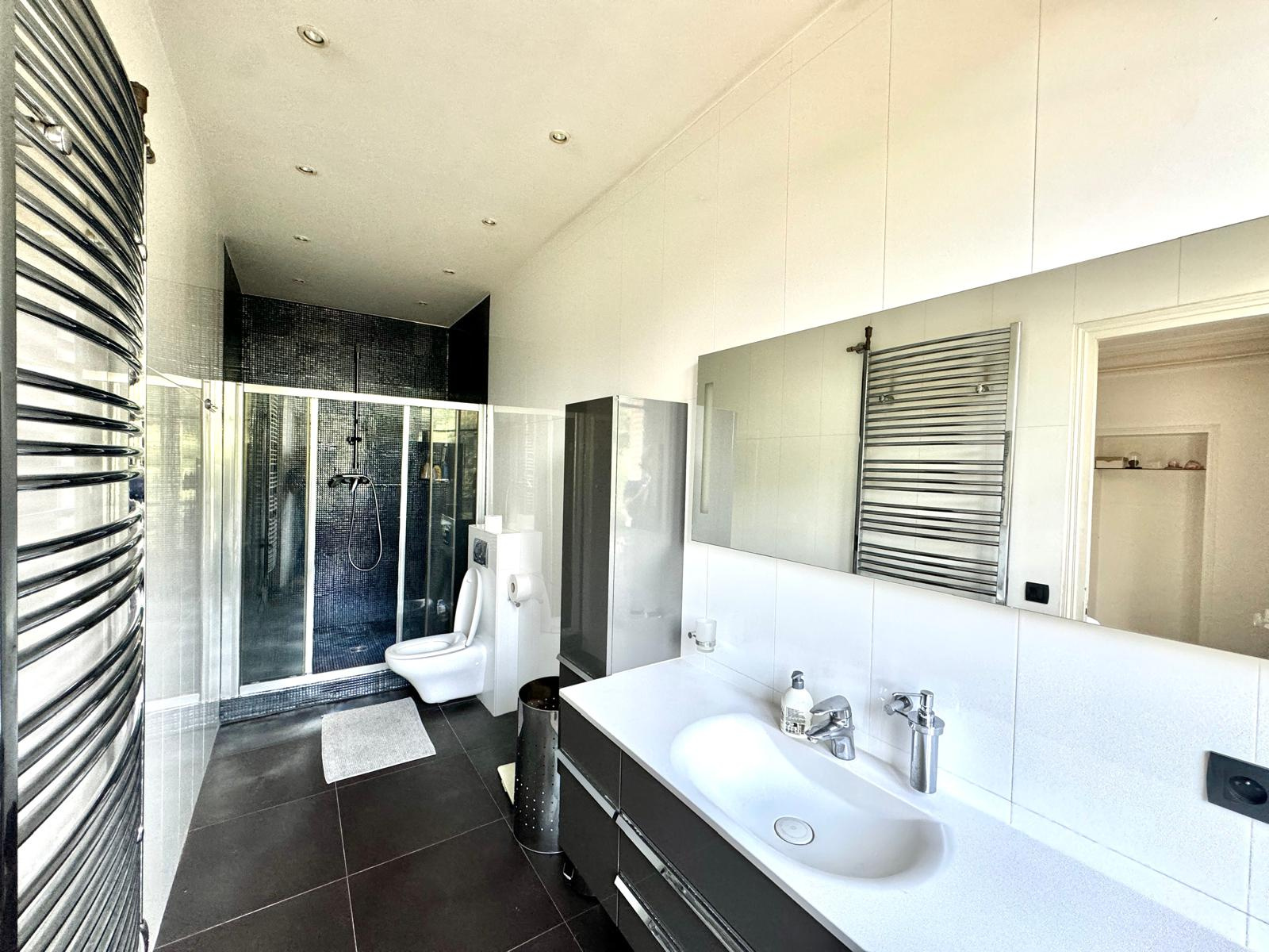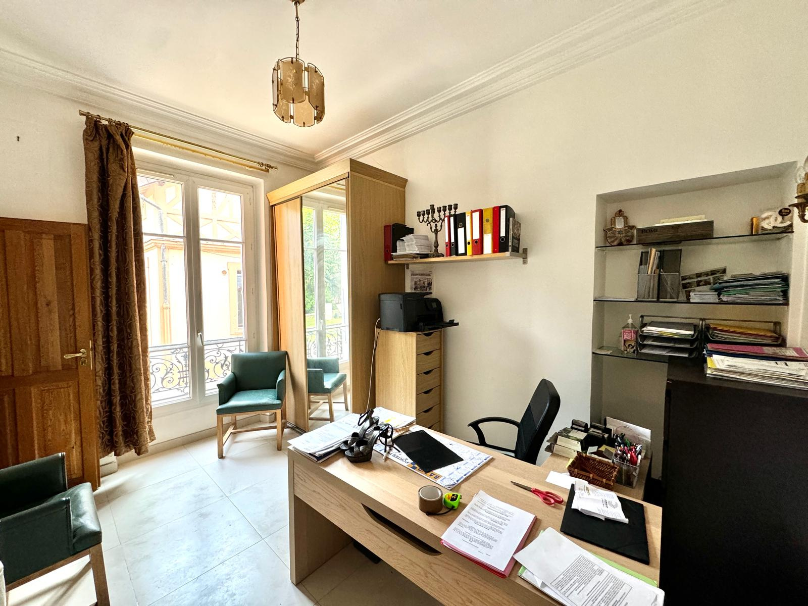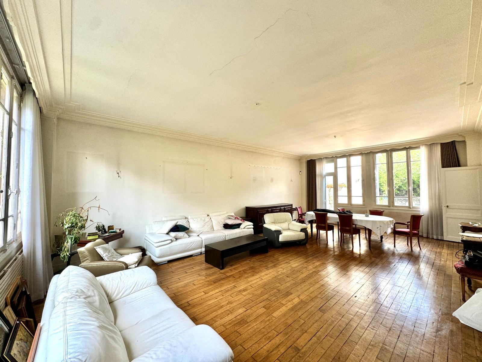 à l'étage : un appartement en duplex avec le 2ème et dernier étage composé d'un salon d'env 54 m2 , cuisine séparée, 7 chambres ,1 salle de bain avec wc et 2 salles d'eau avec wc ,et un wc séparé, dressing, parquet , moulures cheminées.
