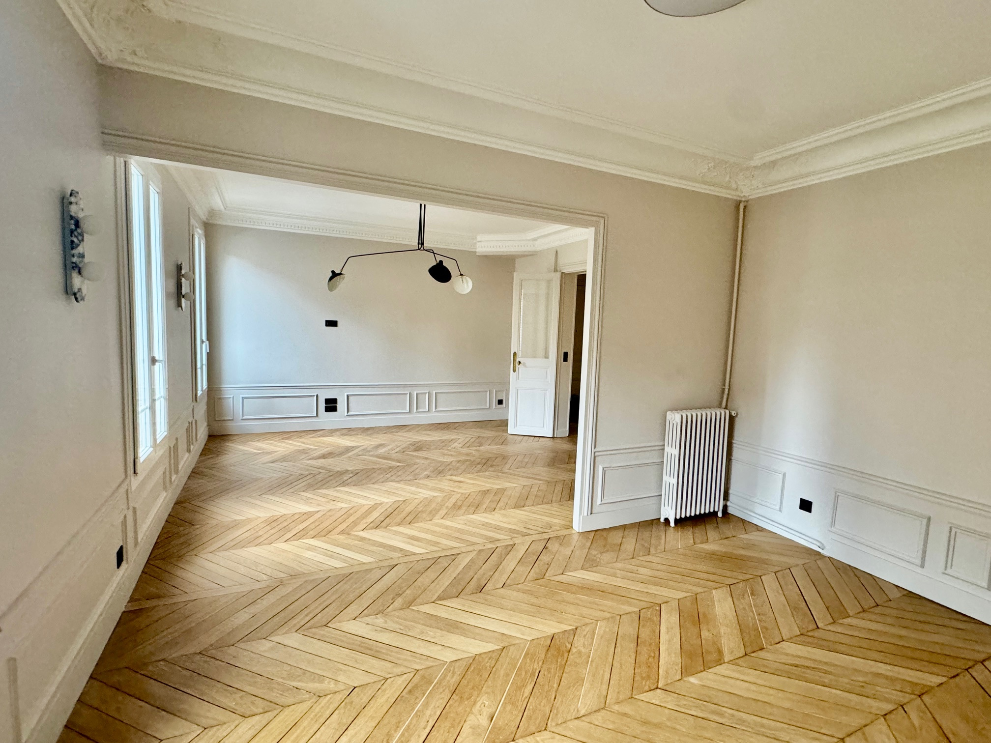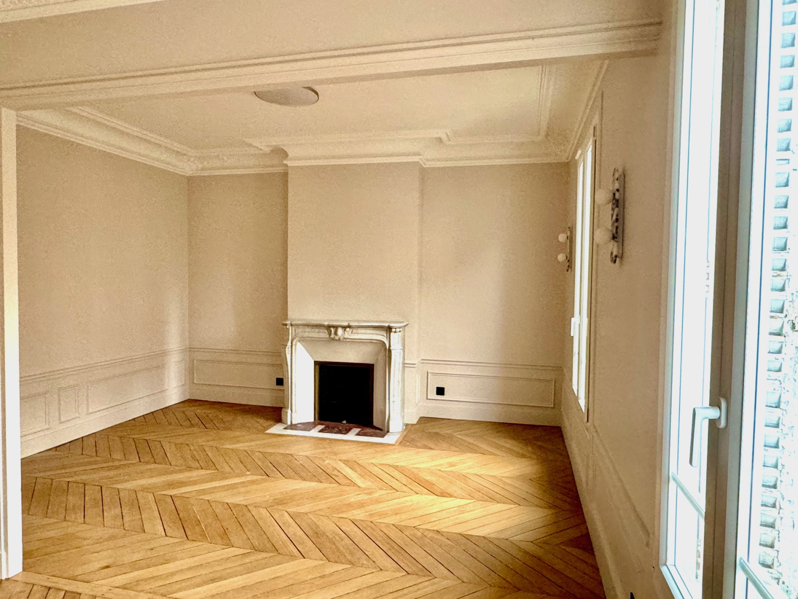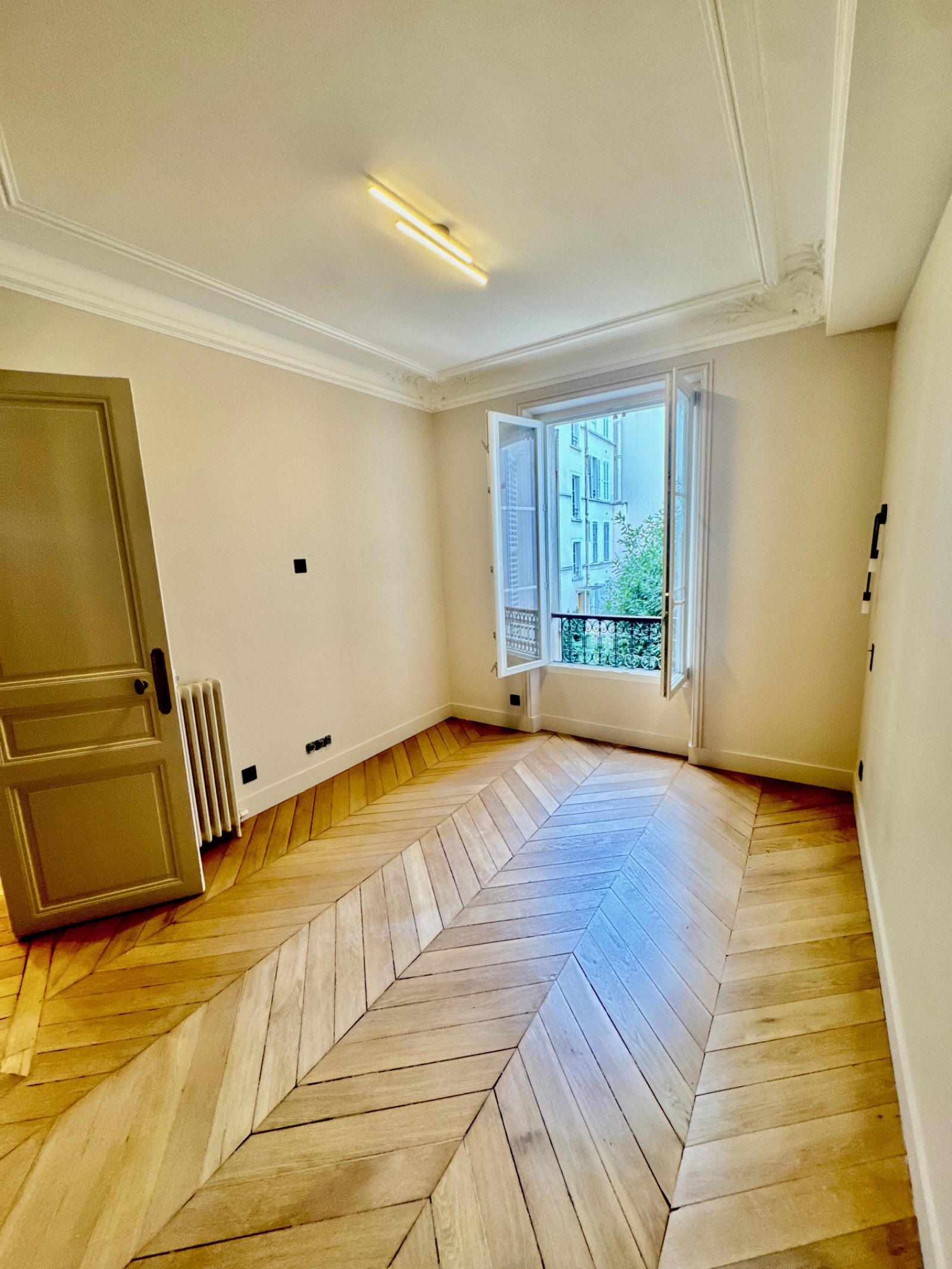 Saint-Maurice (94410)Saint Maurice Plateau emplacement N°1 proche commerces, bois et marché, métro Charenton écoles , dans un petit immeuble de très bon standing de 4 étages, , (toiture neuve) , un appartement refait à neuf, très beau classique parquet point de Hongrie, moulures cheminée Hauteur ss plafond , composé d'une entrée cuisine équipée, salle de bain avec fenêtre et wc, 1 très belle chambre avec parquet avec grand rangement donnant sur jardin, double séjour expo Sud avec 3 fenêtres ,(possibilité de configuration séjour simple avec 2 fenetres et 2 chambres si besoin ) état neuf, soleil , traversant , charme fou volume , cave à visiter très vite, superbe