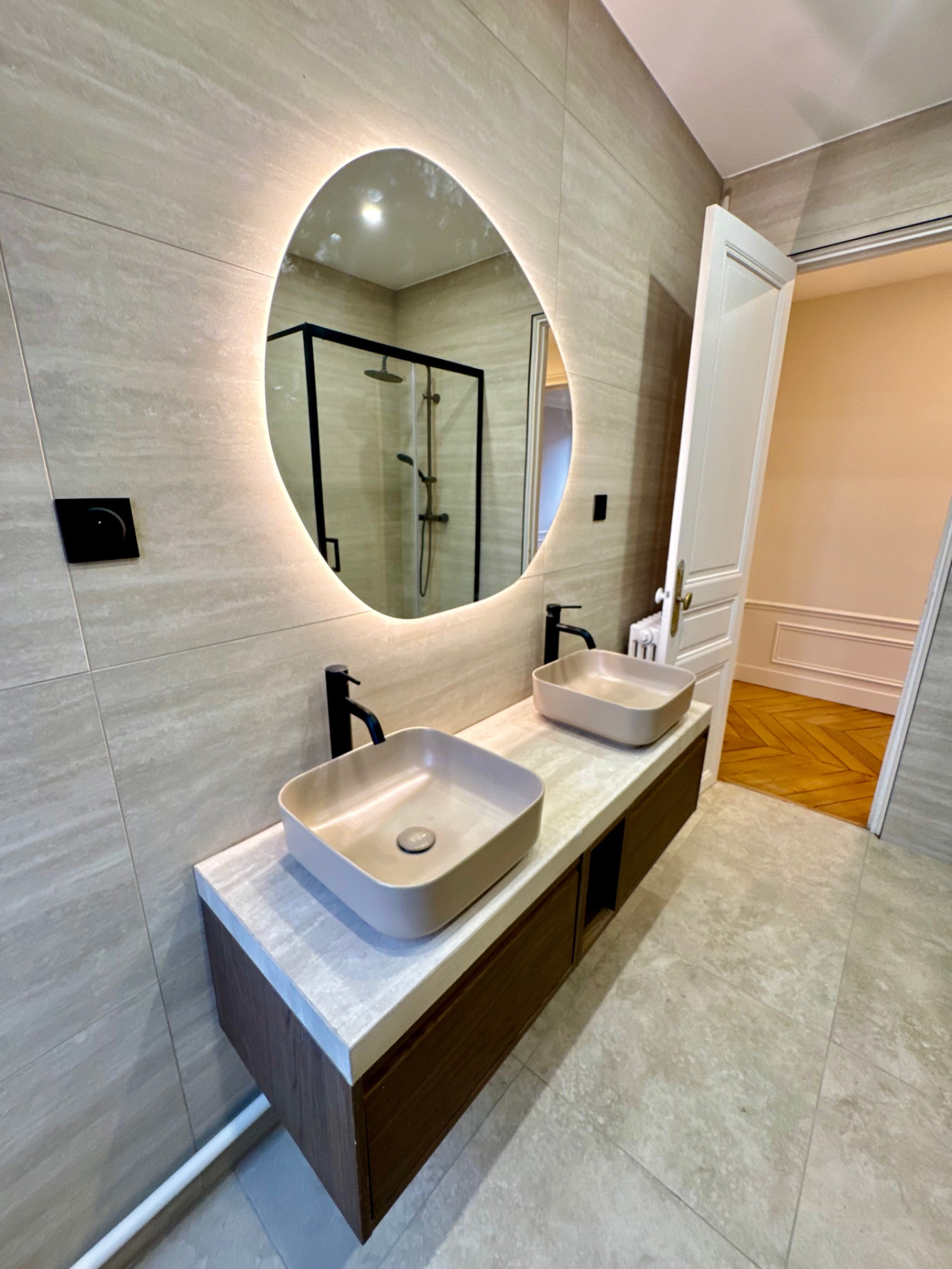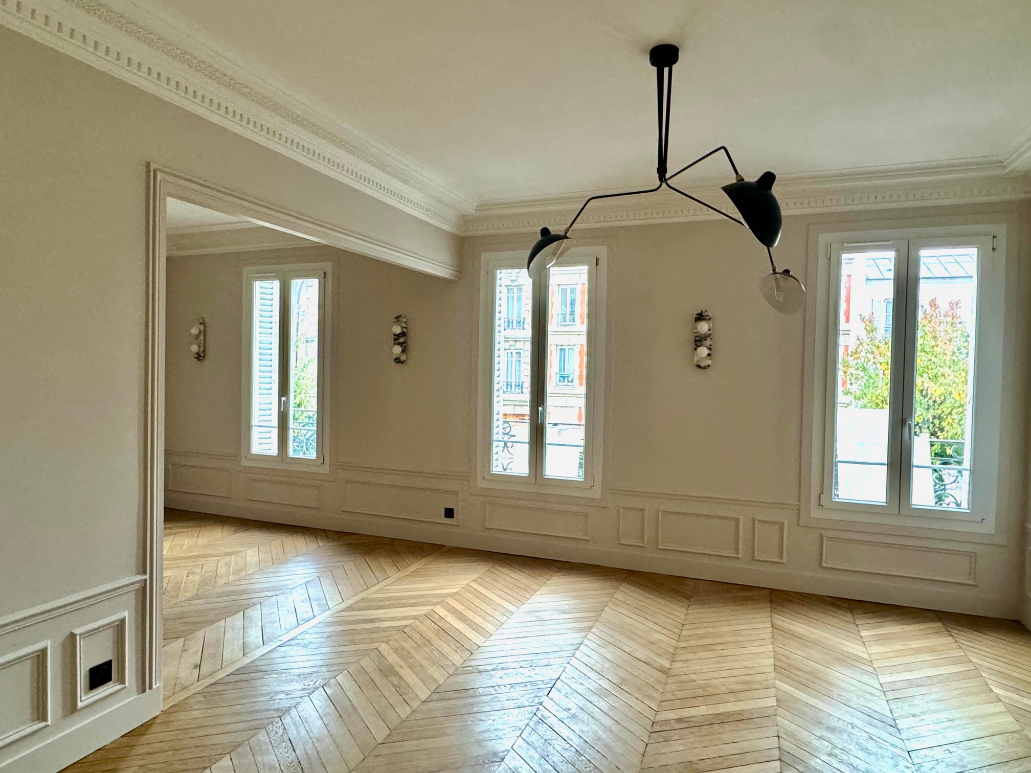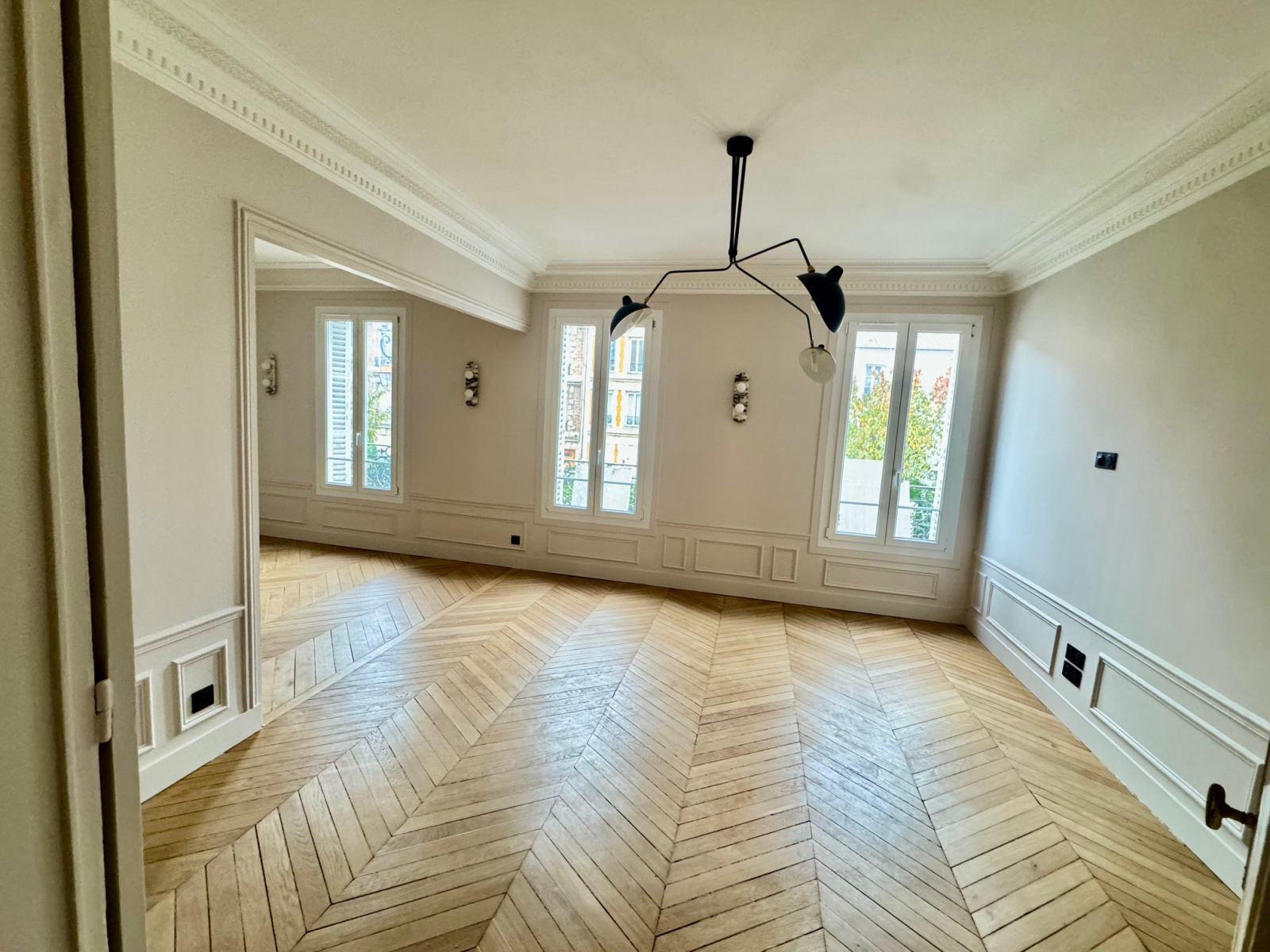 Saint-Maurice (94410)Saint Maurice Plateau emplacement N°1 proche commerces, bois et marché, métro Charenton écoles , dans un petit immeuble de très bon standing de 4 étages, , (toiture neuve) , un appartement refait à neuf, très beau classique parquet point de Hongrie, moulures cheminée Hauteur ss plafond , composé d'une entrée cuisine équipée, salle de bain avec fenêtre et wc, 1 très belle chambre avec parquet avec grand rangement donnant sur jardin, double séjour expo Sud avec 3 fenêtres ,(possibilité de configuration séjour simple avec 2 fenetres et 2 chambres si besoin ) état neuf, soleil , traversant , charme fou volume , cave à visiter très vite, superbe