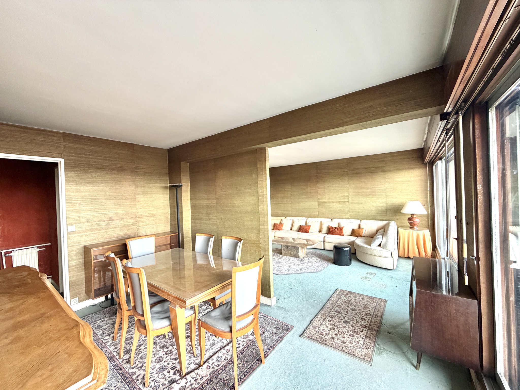 Vincennes (94300)EXCLUSIVITÉ !! Vincennes, au pied de la ligne 1 "Bérault", dans une résidence de standing avec gardien, se trouve au DERNIER ÉTAGE avec ASCENSEUR, un 5 Pièces de 117m² Carrez avec une vue dégagée sans aucun vis à vis !! TRAVERSANT SUD Coté Rue et NORD côté jardin !! Il se compose d'une belle entrée avec placard, d'un séjour / salle à manger de 34m2 avec 2 baies vitrées exposées plein SUD donnant sur une Terrasse de 8m2, d'une cuisine séparée et équipée de 11m2, de 3 chambres de 11-13-15m2 sur jardin au calme dont une avec balcon de 3m2, d'une grande salle de bain, d'une salle d'eau et d'un WC séparés avec lave-mains. Pas de perte de place. Une cave de 6m2 + un parking et un local vélo complètent ce bien. Possibilité de faire 4 chambres si besoin ou bien Triple séjour + Cuisine Us et 3 chambres !! Appartement avec travaux !! Gros potentiel !! Secteur recherché !! À visiter sans tarder !!