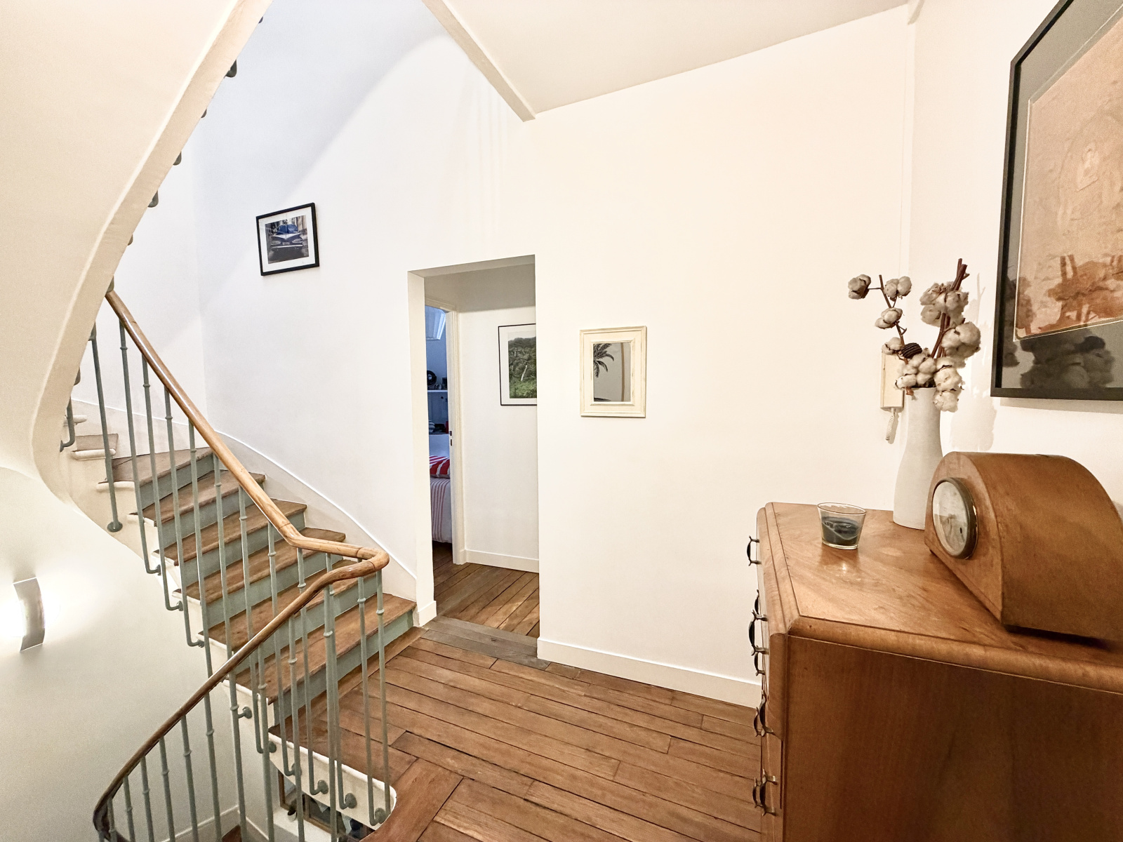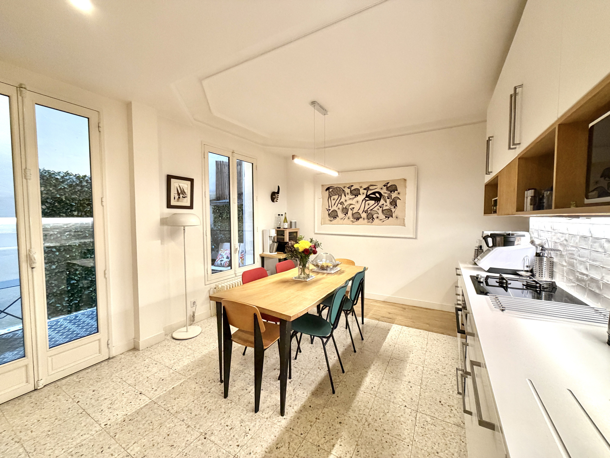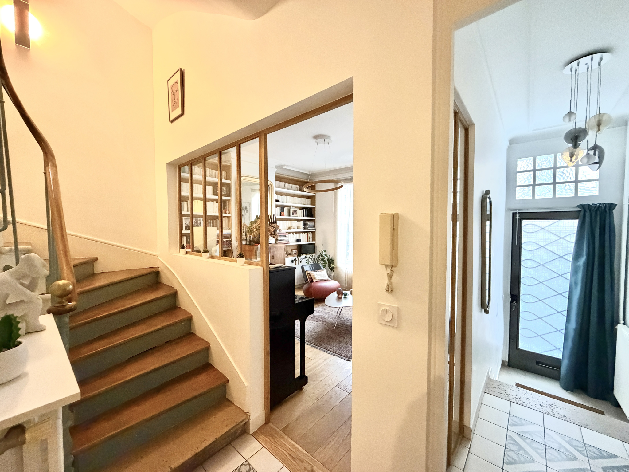 Vincennes, à 5 min à pied du métro "Bérault" et 7min du RER A "Vincennes". Dans une petite rue calme à sens unique, se trouve une jolie maison de ville individuelle de 170m2 en R+2 refaite entièrement à neuve il y a 3ans. Traversante sur rue et sur une petite cour exposée Est-Ouest avec peu de vis à vis. Elle se compose de 4 plateaux d'environ 40-45m2 :