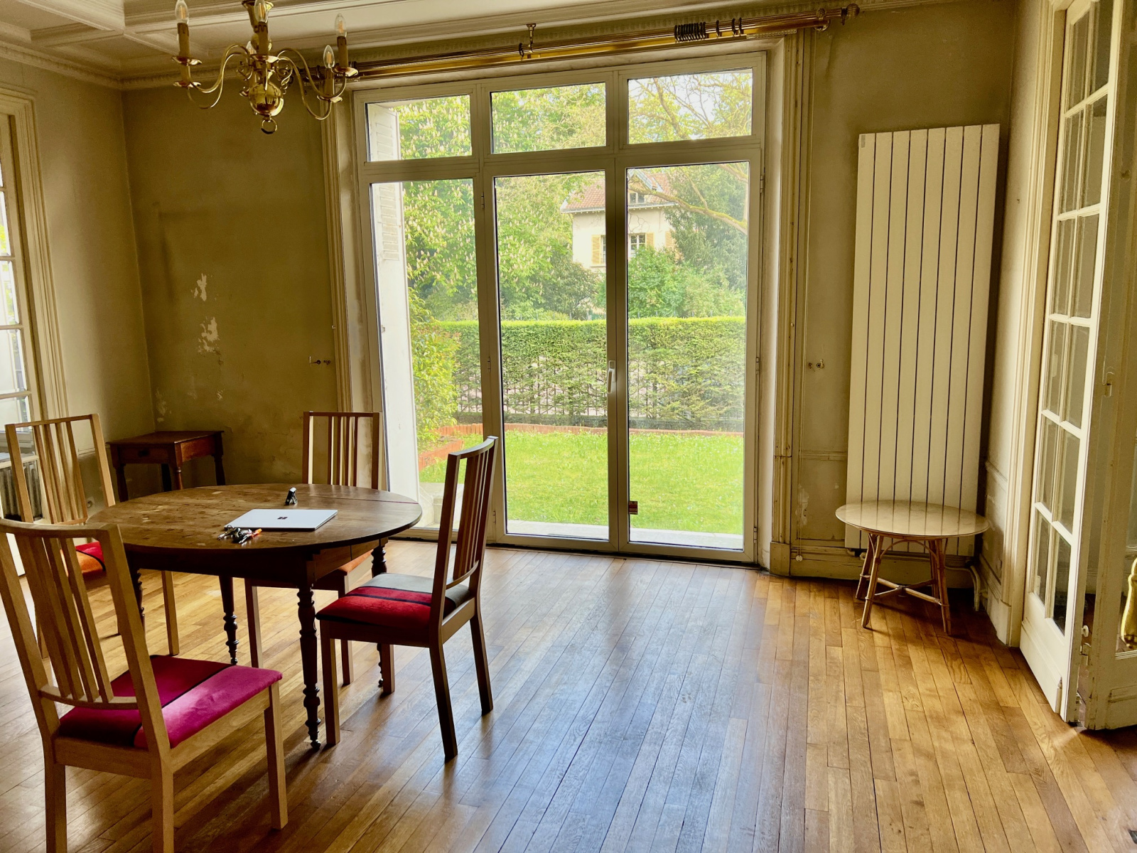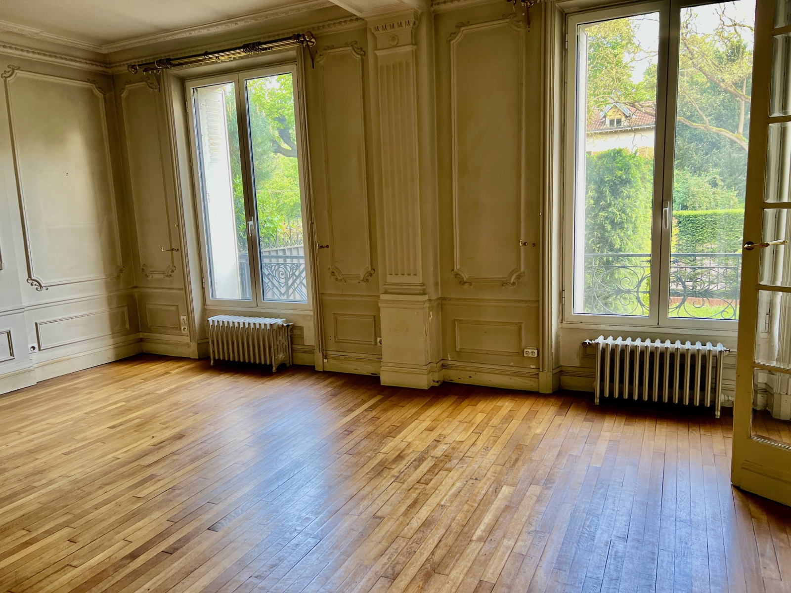 Charenton-le-Pont (94220)Saint Maurice limite Charenton le Pont, emplacement n°1 face bois , dans un immeuble ancien Pierre et Brique de bon standing, un appartement en Rez de jardin en partie surélevé avec beaucoup de charme 6/7 pièces avec grand double séjour avec parquet d’env 46 m2 avec accès par porte fenetre sur un joli perron sur un grand espace extérieur avec terrasse et jardin privatif d’environ 85 m2 face bois , une grande cuisine séparée avec coin repas, 2 chambres et une bureau avec fenêtre, 1 salle de bain, wc séparé, rangements a l’étage en duplex 2 chambres, double vitrage , beaucoup de charme moulures cheminée traversant plusieurs possibilités de configuration soit double séjour et 4 chambres et un bureau (avec fenêtre) cuisine séparée, ou poss double séjour cuisine us et 5 chambres et 1 bureau (avec fenêtre ), cave , poss parking en sus dans l’immeuble entre la maison et l’appartement !!